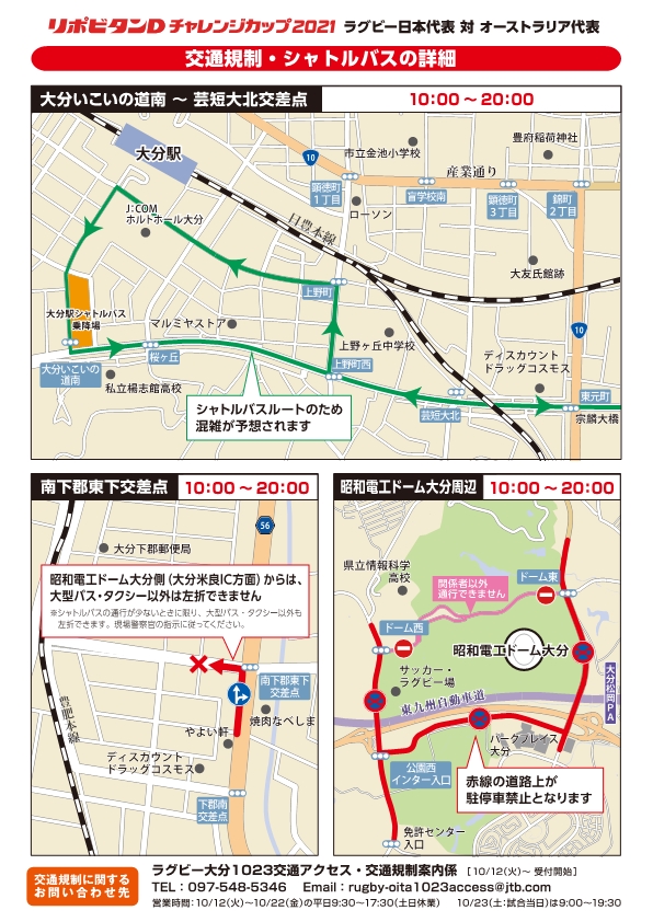 大分県警察 On Twitter 交通規制のお知らせ ラグビー日本代表戦開催に伴う交通規制 10 23 13 45キックオフ の開催に伴い 昭和電工ドーム周辺や南下郡東下交差点において交通規制を行います 当日は 混雑が予想されます 外出の際は交通規制のご確認をお願い