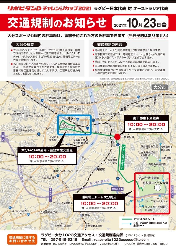 日本代表北側 vs オーストラリア代表南側 1023土1345. 20211018 お知らせ 10月23日土ラグビー日本代表戦は無料シャトルバスを事前にご予約下さい 20211014 お知らせ 大分市中央通り歩行者天国時におけるバス運行の変更について.